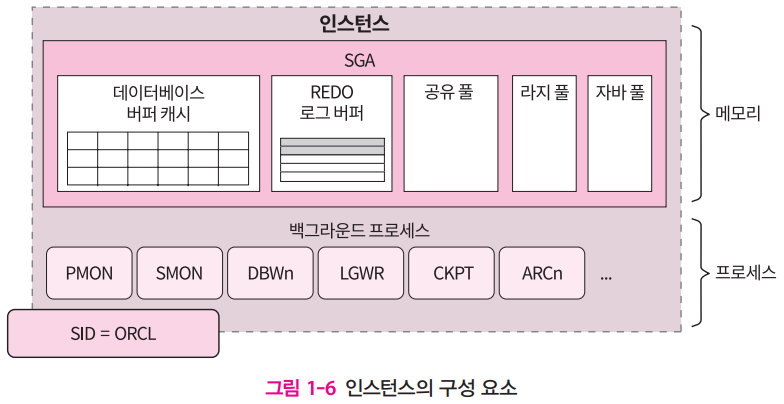 1. 메모리 영역(SGA): DB 버퍼 캐시, REDO 로그 버퍼, Shared Pool, Large Pool, Java Pool