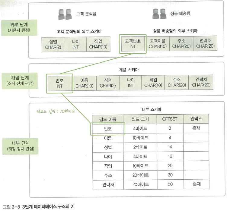 3단계 데이터베이스 구조에는 논리적 데이터 독립성과 물리적 데이터 독립성이 존재한다.